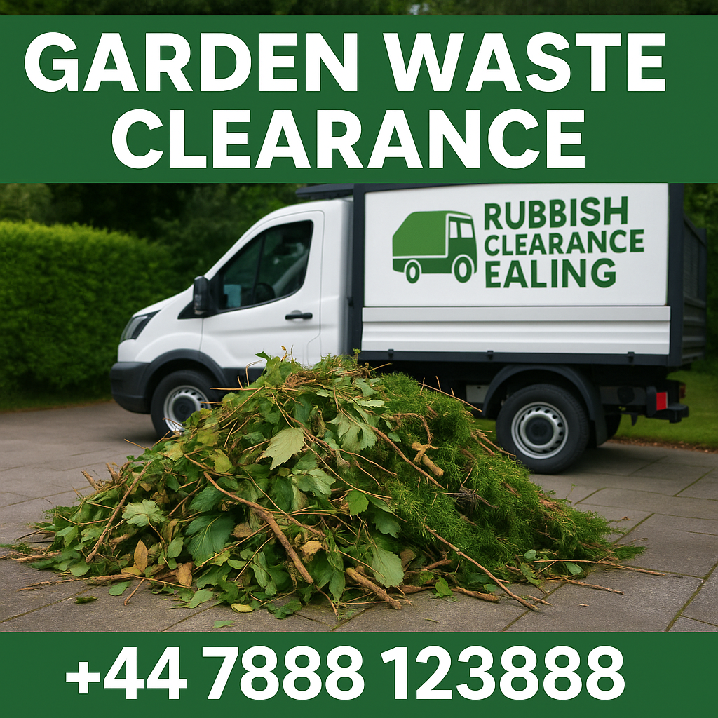 Same-day garden waste clearance completed in Ealing. We removed branches, bags of green waste and old garden clutter, leaving the space clean and ready to use again. Fast, affordable and eco-friendly – call +44 7888 123888 for your garden clearance.