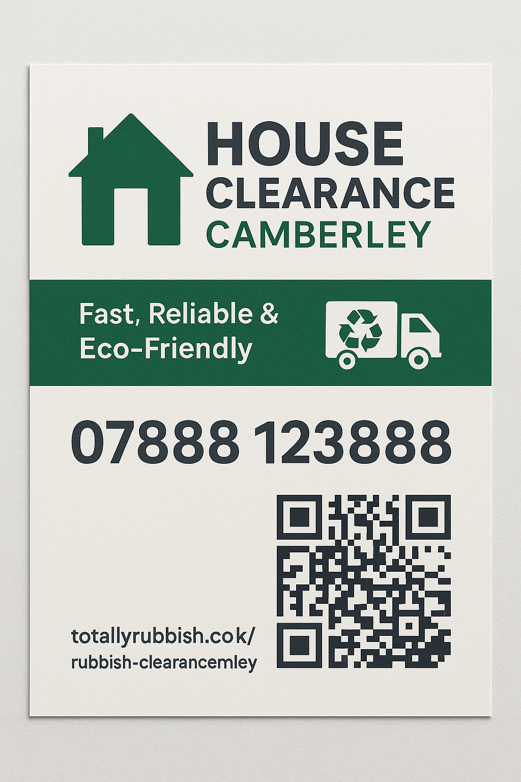 Fast and professional house clearance in Camberley. We clear houses, flats, lofts, garages, gardens and bulky waste—same-day slots available. Fully licensed, eco-friendly and affordable.